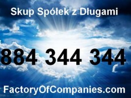 | Skup Sprzedaż Spółek. Kupimy Sprzedamy spółki z o.o. S.A. Jawne Cywilne Komandytowe / spółki zagraniczne GmbH ltd etc. W Naszej ofercie znajdziesz bogaty wybór czystych spółek w cenie od 3500 zł z lat od 1991-2015 roku www.FactoryOfCompanies.com nice@factoryofcompanies.com tel: 884-344-344 |