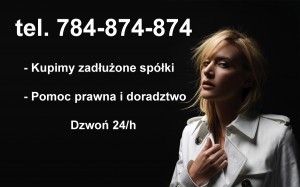 Kupię przejmę zadłużoną spółkę z ograniczoną odpowiedzialnością lub akcyjną w absolutnie każdej sytuacji: finansowej , księgowej , leasingowo, kredytowej , pracowniczej , sądowej , upadłości, likwidacji , dla nas nie ma trudnych sytuacji . Notarialne odkupienie udziałów, akcji zmiana zarządu , siedziby oraz nazwy . Wszystko to z dnia na dzień w 24 godziny tel.784-874-874 lub www.spolki.biz
